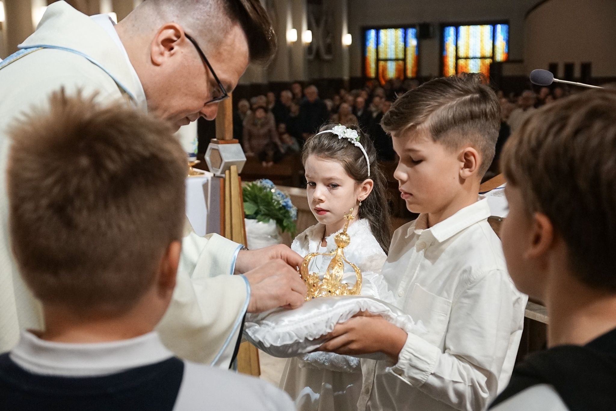 W niedzielę, 12 października 2025 r., podczas Mszy św. dla dzieci o godz. 11:00, w naszej Parafii odbyło się uroczyste poświęcenie różańca i korony dla